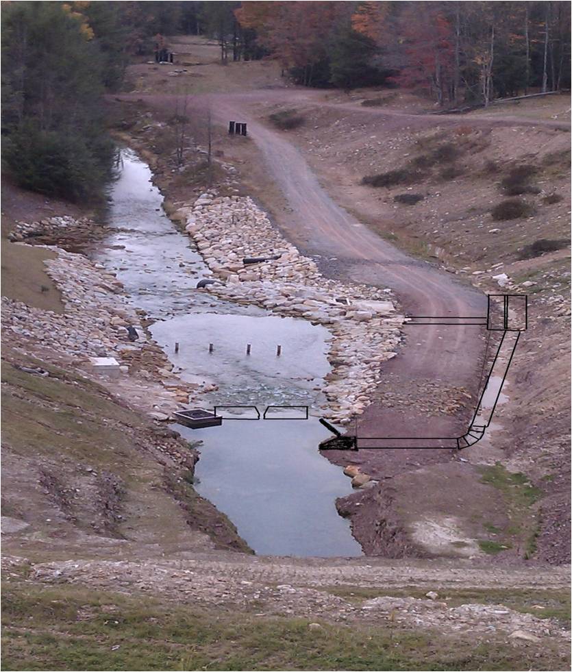 Existing In-take & Proposed Bypass (in black drawing) at Audenreid AMD Tunnel Discharge on Catawissa Creek