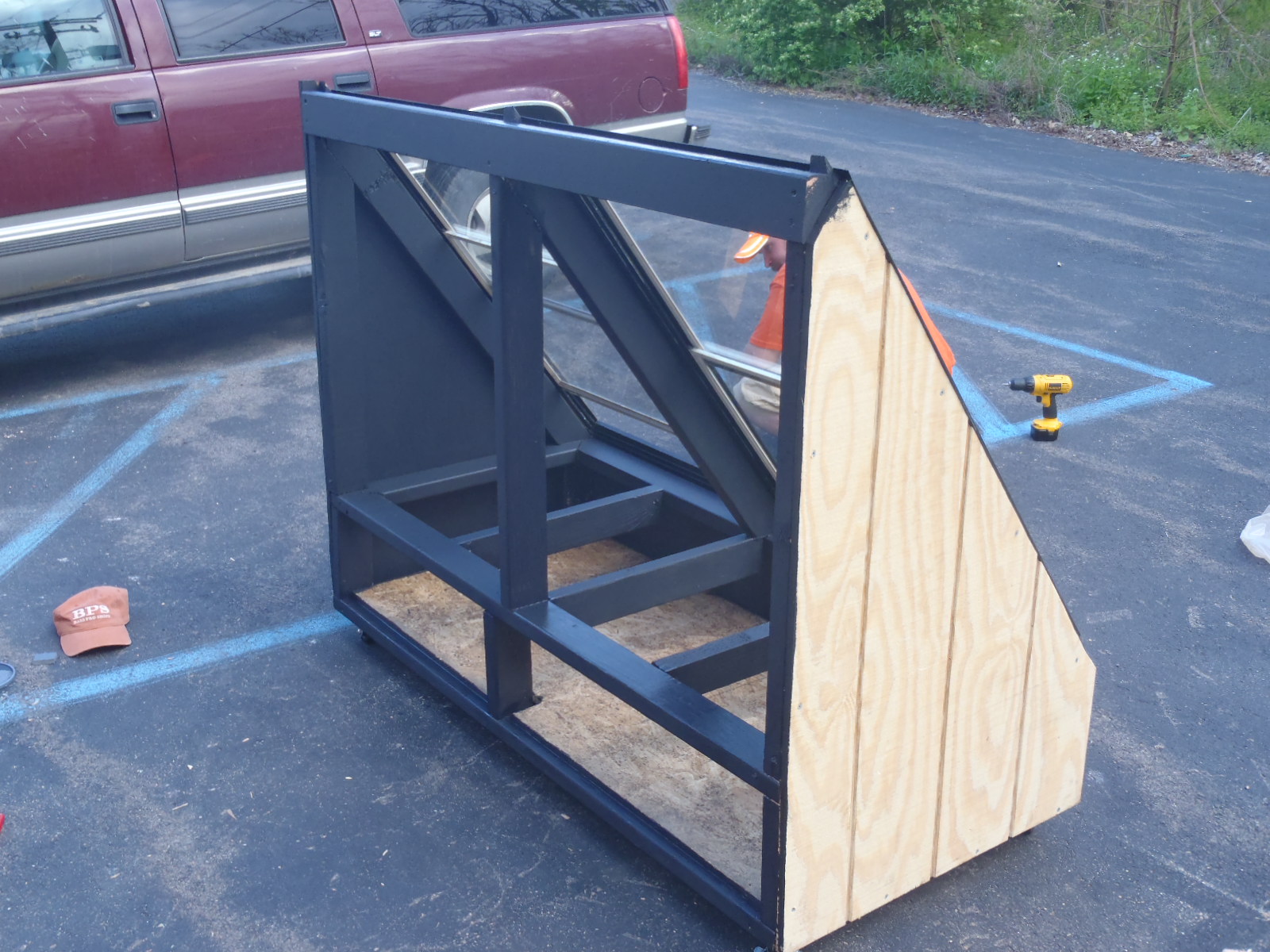 EPCAMR’s Solar Kiln getting painted in the black powder coat prior to putting on the Yellow Boy iron oxide stain on the outside panels