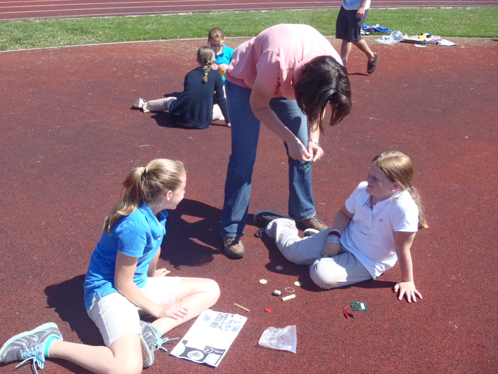 Ann Devine-PA DEP EE Coordinator working with students to help them build their solar powered race cars.