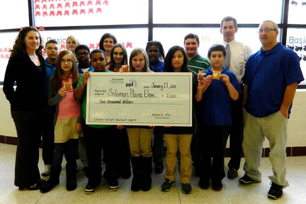 Students gather with PPL, EPCAMR, and W-B Area School District at Leo E. Solomon Plains to receive the grant check.