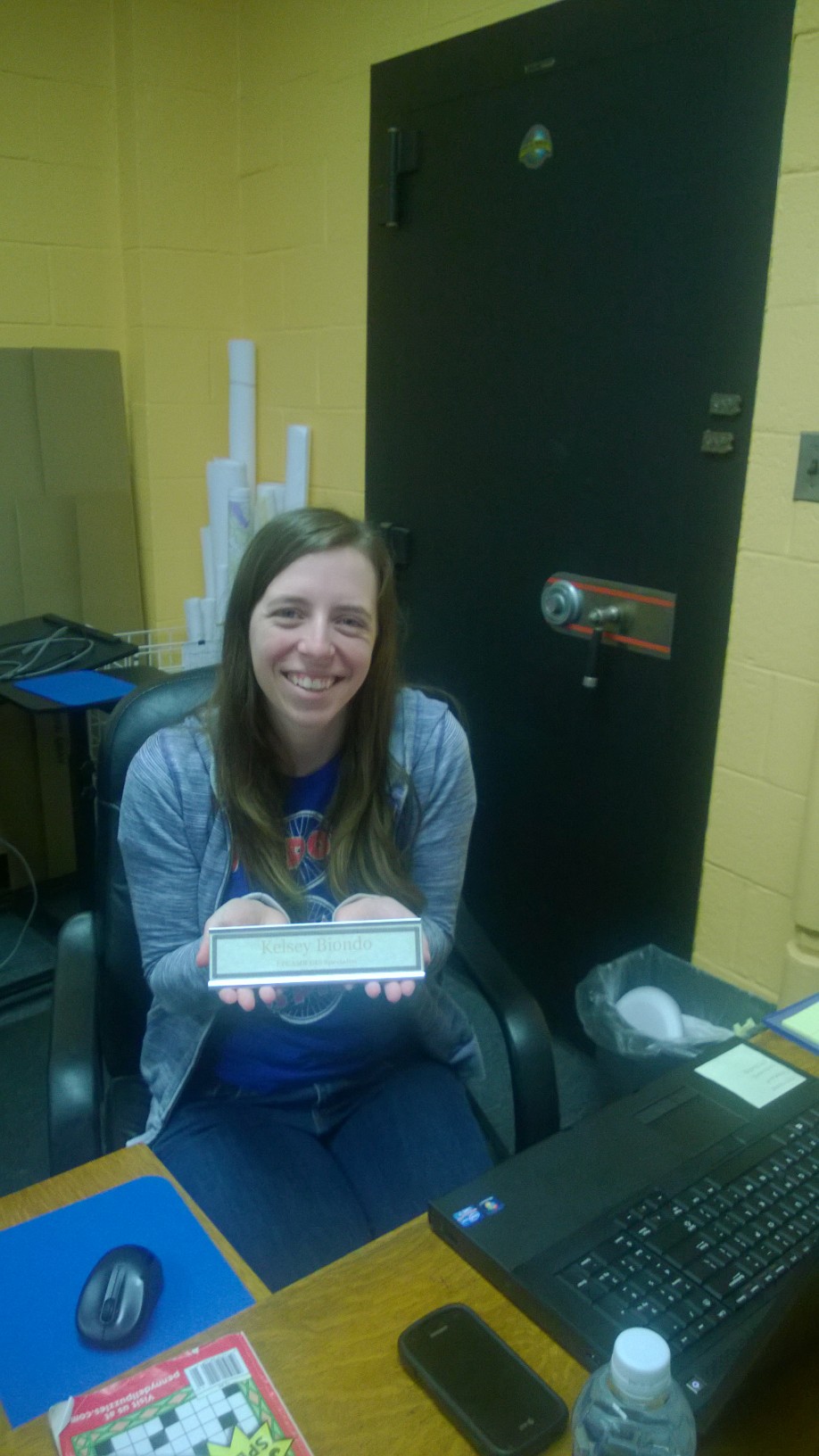 Mike Hewitt, EPCAMR Program Manager, who oversees the GIS Team working on the project even went out of his way to create name templates for Dave and Kelsey yesterday with their titles on them out of fancy recycled bond paper and provided them to the two of them today. They were surprised and had a chuckle at the same time. Noone has ever made them a homemade name plate before. Robert joked, “It’s the little things we do to make our EPCAMR Family happy!” The smile on her face was priceless and bigger than the one that she had when she was an intern and I caught her off-guard and took a photo of her for the Staff Page when she first started with EPCAMR.”